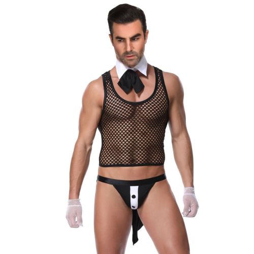 Станьте звездой шоу с этим знойным черным мужским сексуальным комплектом нижнего белья Valet, который наверняка заставит сердца биться чаще.