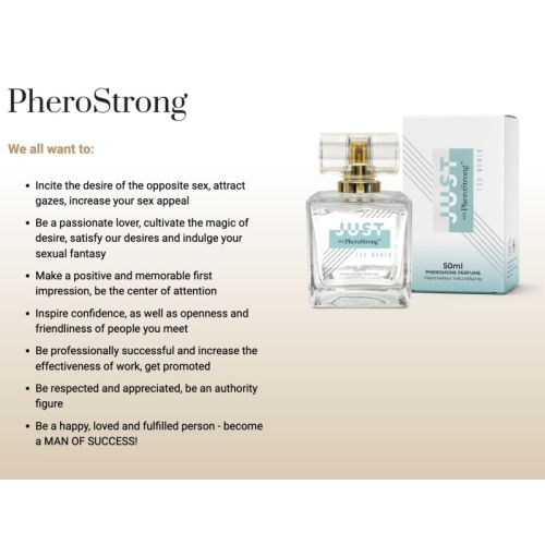 Разжигайте желание противоположного пола, привлекайте взгляды, повышайте свою сексуальную привлекательность. Будь страстным любовником, культивируй магию желания, удовлетворяй наши желания и предавайся своей сексуальной фантазии. Произведите положительное и запоминающееся первое впечатление, будьте в центре внимания. Внушайте доверие, а также открытость и дружелюбие людей, которых вы встречаете. Будь профессионально успешен и повышай эффективность работы, получай повышение. Пользуйтесь уважением и признательностью, будьте авторитетной фигурой. Будь счастливым, любимым и состоявшимся человеком - стань МУЖЧИНОЙ УСПЕХА!Верхняя нота: перец, гиацинт. Нота сердца: ирис, жасмин. Базовая нота: пачули, мускус, ваниль, амбра. Женственный, утонченный и элегантный. Таков феромон PheroStrong Just for Women, который отражает вневременной стиль и внимание к деталям. Его цветочно-шипровая парфюмерная композиция подходит как для повседневного ношения, так и для особых случаев, красиво подчеркивая праздничный характер творения. Цветочно-шипровый аромат для женщин, которые хотят выглядеть элегантно, идеально подходит для повседневных и особых случаев. PheroStrong feromone Just for Women верхняя нота принадлежит гиацинту, оставаясь контрастной со слегка пряным перцем. Затем на первый план выходят тонкий жасмин и опьяняющий ирис. Базовые ноты раскрывают чувственные впечатления, построенные на аккордах амбры, мускуса, изысканной ванили и пачули.Всегда элегантный и ухоженный любитель роскошных автомобилей, известный ютубер и вдохновитель. Один из владельцев FAME MMA. Он стал популярным благодаря программе «Варшавский берег». Химия любви, выпущенная с ароматом PheroStrong, начинает чувственное путешествие в глубины нашего подсознания. Поют я в тебя влюблен, весь мир кружится. Я влюблен в тебя. Что ты сделал, что я больше не могу быть одна?Феромон в переводе с греческого означает передатчик возбуждения. Феромоны представляют собой летучие химические соединения, способные действовать вне организма. Вероятно, они присутствуют во всех организмах: у животных, растений, грибов, бактерий, а также у человека. Однако феромоны работают только между особями одного вида. Благодаря им мы посылаем стимулы, положительно влияющие на общение с окружающей средой и повышающие нашу привлекательность в глазах противоположного пола.По мнению исследователей Венского института городской этологии, запахи человеческого тела содержат информацию, определяющую эмоциональное состояние человека. Когда наши обонятельные рецепторы улавливают «запах» феромонов, человеческий разум распознает их как специфический запах, который будет вызывать подсознательные реакции у других людей в любой ситуации.Феромоны, вероятно, будут наиболее эффективны при использовании в качестве приманки, а также в социальных взаимодействиях, где необходимо взаимное доверие, эффективные переговоры или выработка удовлетворительных решений - дома, на работе, на вечеринке с друзьями или в гостях. официальная встреча.Таким образом, весь процесс очень эффективен, потому что он происходит ниже сознательного уровня — ниже нашего осознания — на уровне инстинктов. Реципиент изменяет свое поведение, благодаря влиянию вещества, совершенно не чувствуя запаха феромона и не зная о его действии. Считается, что если бы мы не пол