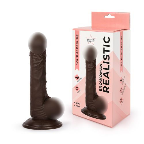 Фаллоимитатор 14 см/3,7 см реалистичный с мошонкой на присоске виниловый Erowoman коричневый