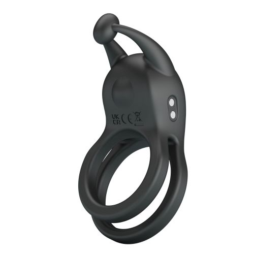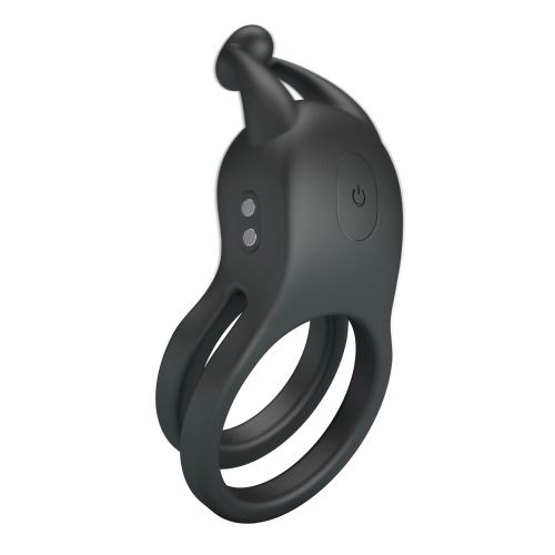 Эрекционное виброкольцо с клиторальной стимуляцией силиконовое черное LYBAILE Pretty Love Goodwin Vibrating Double Penis Ring
