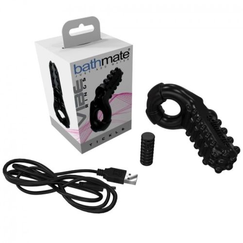 Эрекционное кольцо с вибрацией от Bathmate Tickle со съемной вибропулей, черное