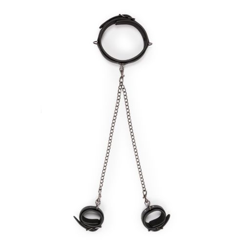 Свяжите лодыжки и шею вашего партнера этим красивым воротником с манжетами на щиколотках и наслаждайтесь ощущением контроля! Они сделаны из кожи, что придает им роскошный вид. И воротник, и манжеты регулируются, поэтому они обязательно подойдут по размеру. С этим воротничком вы определенно испытаете волнующую и сексуальную игру SM.