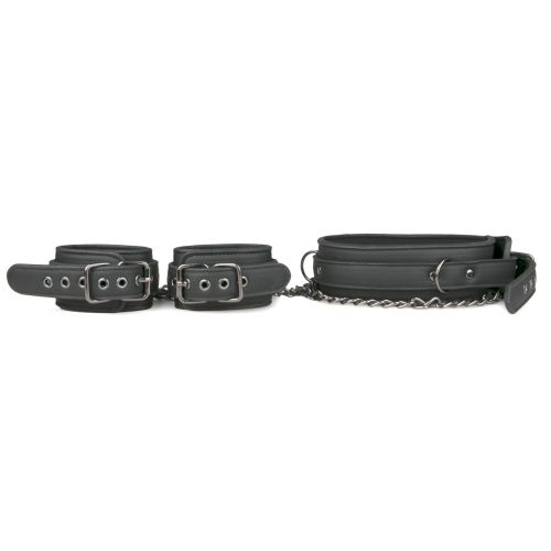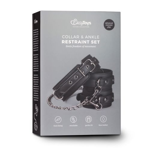 Фиксация тела БДСМ Ошейник с оковами из искусственной кожи черного цвета EasyToys
