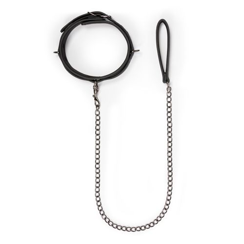 Ошейник с поводком цепочкой БДСМ искусственная кожа черный Easytoys