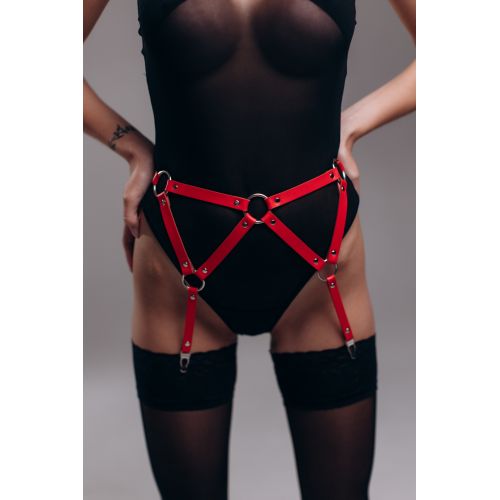 Пояс для чулок S5, экокожа, ручная работа, красный