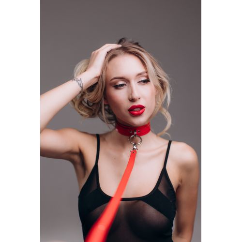 Тонкий ошейник с поводком из натуральной кожи выполнен вручную. Подчините своего партнера полностью и управляйте его волей.