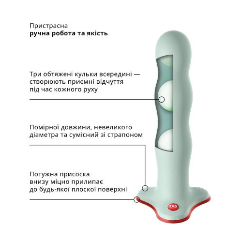 Превратить любой сексуальный контакт в небывалый захватывающий опыт вы сможете, если купите фаллоимитатор Fun Factory BOUNCER. Особенность игрушки — три утяжеленных шарика внутри. Они не только создают рельеф, приятный при проникновении, но и придают стимуляции эрогенных зон новые оттенки, перекатываясь при каждом движении.