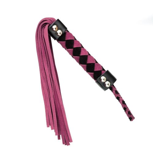 Флогер розово-черный, замша, ручка ромб