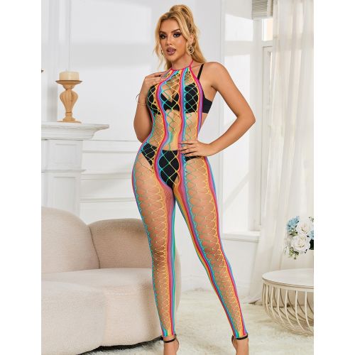 Сексуальный комбинезон в сеточку Star Night с открытой спиной и открытым доступом, радужный
