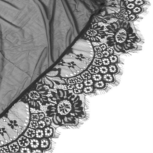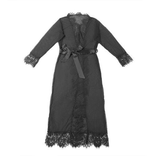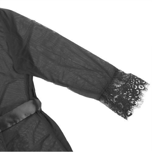 Халатик полупрозрачный Star Night с поясом и кружевом, черный, M-L