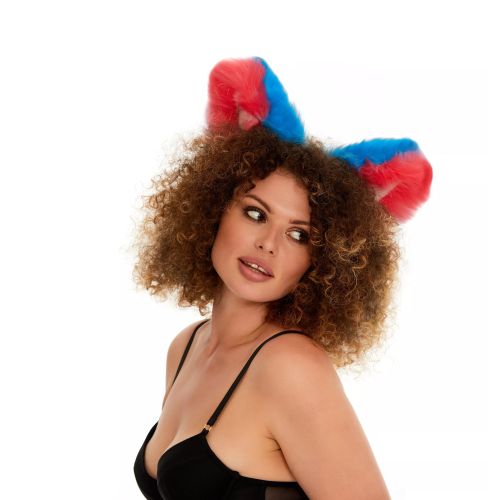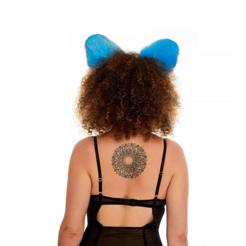 Меховые ушки кошечки для ролевых игр трехцветные Ярко голубой Ярко розовый Белый Okova