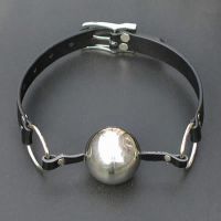 Кляп для рта черный кожаный со стальным шаром