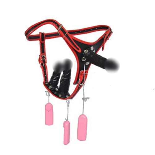 Женский вибрострапон с вагинально-анальной стимуляцией для секс-игр черный