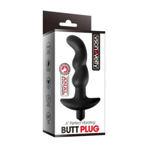 Анальная вибропробка с изгибом черного цвета Vscnovelty Perfect Vibrating Butt Plug