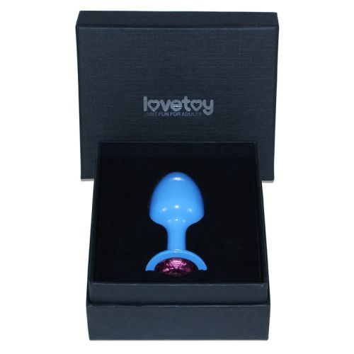 Анальная пробка голубого цвета с кристаллом розового цвета Lovetoy Rosebud Plug