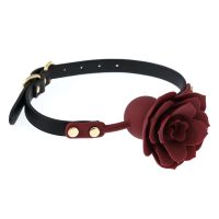 Кляп в рот шарик с розой БДСМ из силикона красного цвета с черным ремешком Bdsm4u