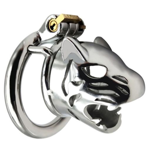 Пояс верности с головой тигра БДСМ мужской из нержавеющей стали серебристого цвета Bdsm4u