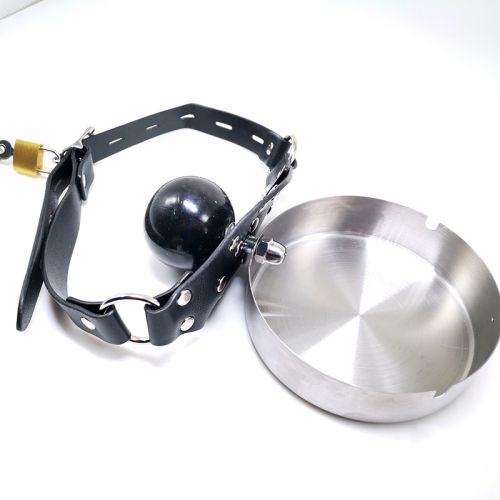 Кляп шарик в рот черного цвета БДСМ с металлической серебристой пепельницей Bdsm4u