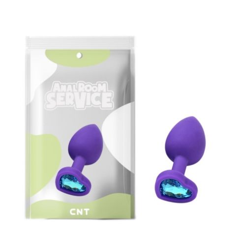 Анальная пробка силиконовая фиолетового цвета с голубым камушком в форме сердца Cnt Love Diamond размер Small