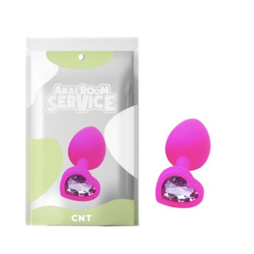 Анальная пробка силиконовая розового цвета с фиолетовым камушком в форме сердца Cnt Love Diamond размер Small