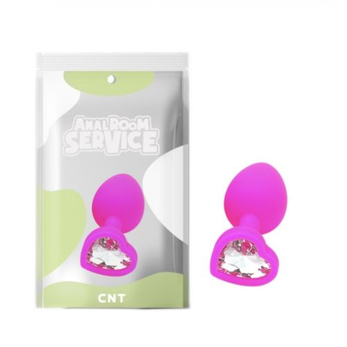 Анальная пробка силиконовая розового цвета с прозрачным камушком в форме сердца Cnt Love Diamond размер Small