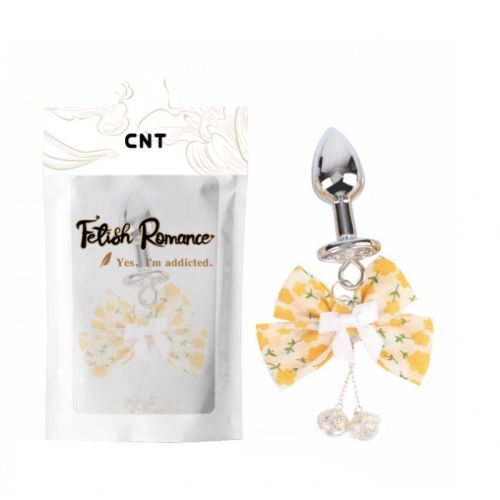 Анальная пробка из медицинской стали с камушком серебристого цвета с желтым бантиком Cnt Sun Flower Flows
