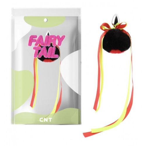 Анальная пробка с пушистым хвостом Cute Heart Fluffy Plug with Tail черно-красный