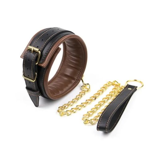 Ошейник с поводком цепочкой БДСМ коричневого цвета Vscnovelty