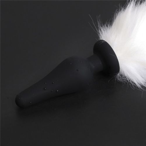 Анальная силиконовая пробка с белым пушистым хвостом Flirting Tail Wool