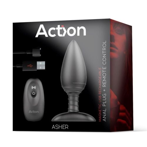 Анальная вибропробка с пультом управления Action Asher Butt Plug черного цвета
