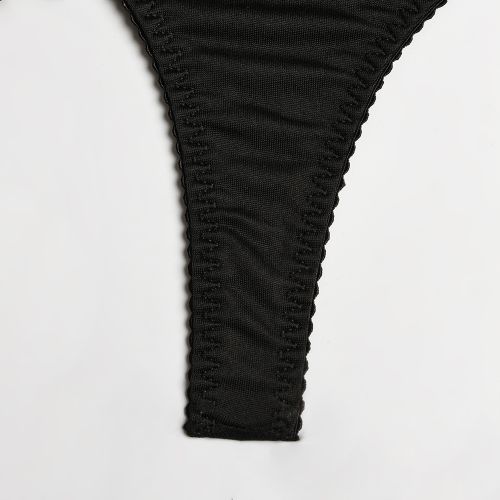 Потрясающий сексуальный комплект с поясом и резинками в классическом черном цвете идеально подойдет каждой сексапильной девушке, поможет создать не забываемый образ и приятно удивить партнера. Комплект изготовлен из приятного тактильно и отлично тянущегося материала. Лиф — мягкий со стрепами, полупрозрачный, бретели регулируются. Пояс с регулируемыми пажами, фиксируется стандартной застежкой сзади и спереди. Трусики — стринги. Также к комплекту прилагаются сетчатые резинки, которые удобными крючками пристегиваются к поясу, отлично заменив чулки.