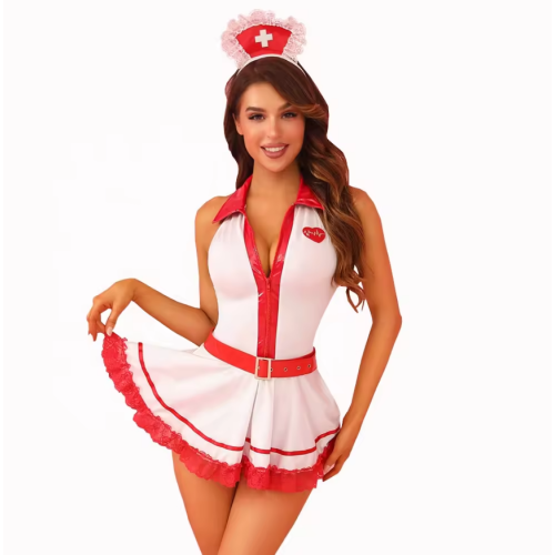 С эротическим костюмом медсестры Venetia перевоплотиться в одну из самых горячих мужских фантазий. Данный привлекательный костюмчик сексуальной медсестры представляет собой белое платье с красными кружевными вставками с заманчивым вырезом на груди, трусики-стринги, а также в комплекте предусмотрен головной убор медсестры и красный ремень. Попробуйте себя в роли соблазнительной медсестры, и ваш партнер будет покорен!