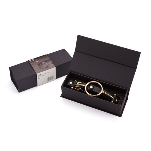Кляп черный Roomfun Romfun Mouth Gag M с золотым кольцом для прижатия языка