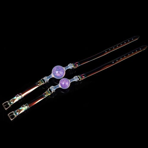 Фиолетовый камень внутри шарика — не просто декоративная деталь, а оригинальный акцент, который добавляет игре эстетики и превращает аксессуар в эффектный элемент ролевого образа. Такой кляп станет гармоничным дополнением к коллекции BDSM-атрибутов, сочетая в себе функциональность и визуальную привлекательность.