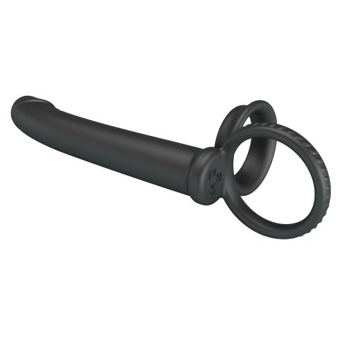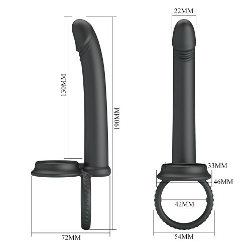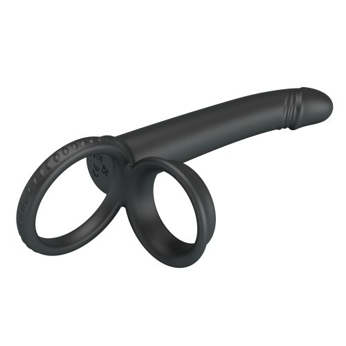Кольцо-насадка Pretty Love для двойного проникновения, черная, 19 х 2.2 см