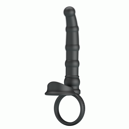 Кольцо-насадка с вибрацией Pretty Love для двойного проникновения, черная, 17.8 х 1.7-2.5 см