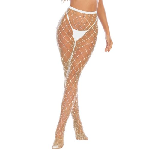 Колготы в крупную сетку Star Night со стразами, белые, XS-M