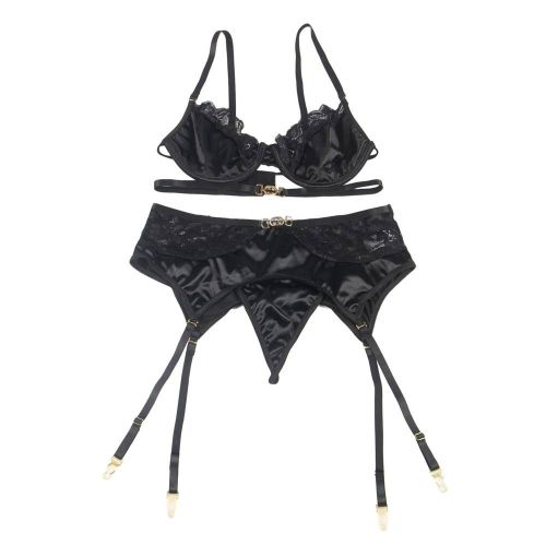 Комплект белья кружевной Star Night с поясом для чулок, черный, XS-S
