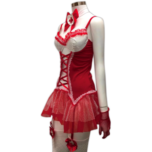 Сексуальная медсестра - заветная мечта миллионов мужчин! Пышная дразнящая юбка на талии корсет, белые романтические чулки украшены атласными лентами на подтяжках.