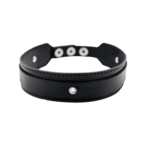 Ошейник с камушком Сваровски БДСМ из натуральной кожи черного цвета Scappa