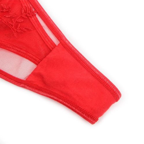 Красный сексуальный кружевной с вышивкой пояс для чулок и трусики, 2XL
