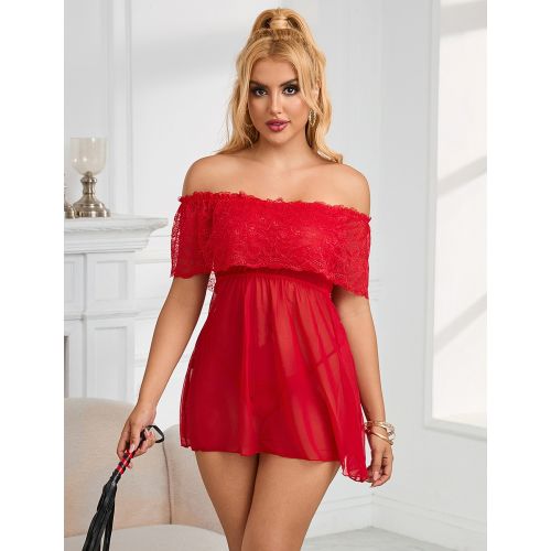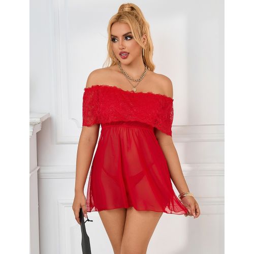 Кружевное сексуальное платье комбинация с открытыми плечами красного цвета Star Night