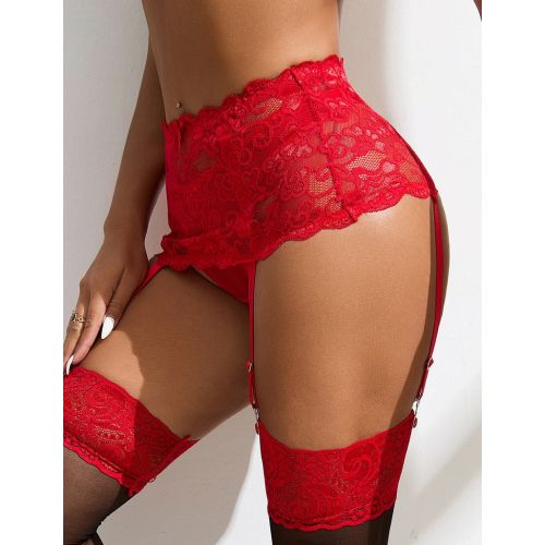 Кружевной пояс для чулок Star Night красный, XS-S