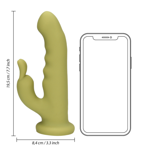 Вибратор с ротацией для точки G и с отростком для клитора оливкового цвета Loveline