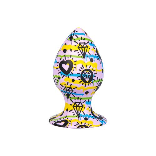 Анальная пробка на присоске силиконовая с рисунком Loveshop размер L