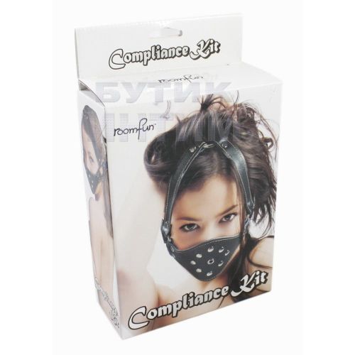 Маска на рот БДСМ с металлическими заклепками черная Roomfun Compliance Kit