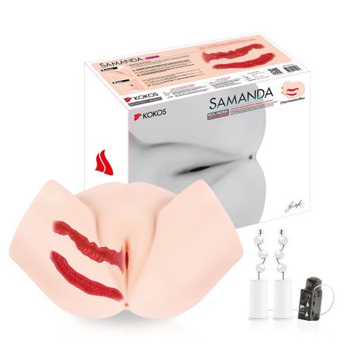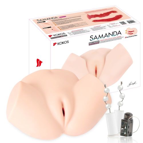 Мастурбатор полуторс Анус и Вагина с вибрацией и массажем телесного цвета Kokos Samanda 2WayPlus