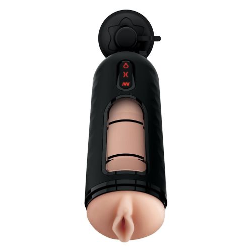 Мастурбатор в колбе Вагина на присоске с вибацией черно телесный Pipedream PDX Elite Vibrating Mega Milker