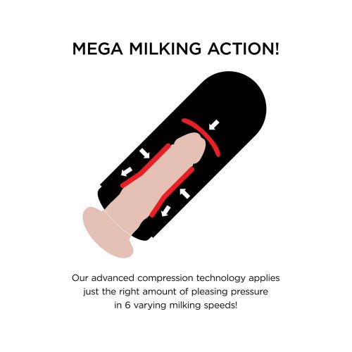 Перезаряжаемый мастурбатор с регулируемой присоской оснащен 6 скоростями доения, 7 режимами вибрации и светодиодным шоу, которое видно через прозрачное окошко во время использования. Всеми функциями можно управлять по отдельности одним нажатием кнопки.