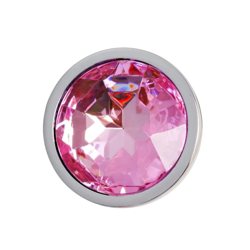 Металлическая анальная пробка серебристая с розовым камушком Sexy desires размер М